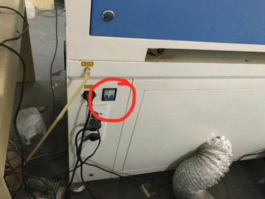 4.打开激光雕刻机。推开总开关,旋转打开雕刻机操作台的按钮。