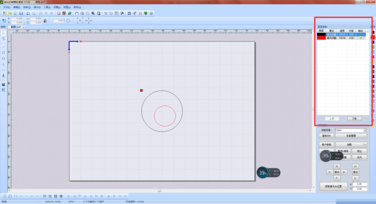 ③ 双击图层,根模型材料及雕刻样式(是否雕穿)调试雕刻机功率与速度,用与模型材料相同的材料先进行尝试。功率越大,速度越小,则雕刻力度越大,反之越小。功率最大不可超过 100。