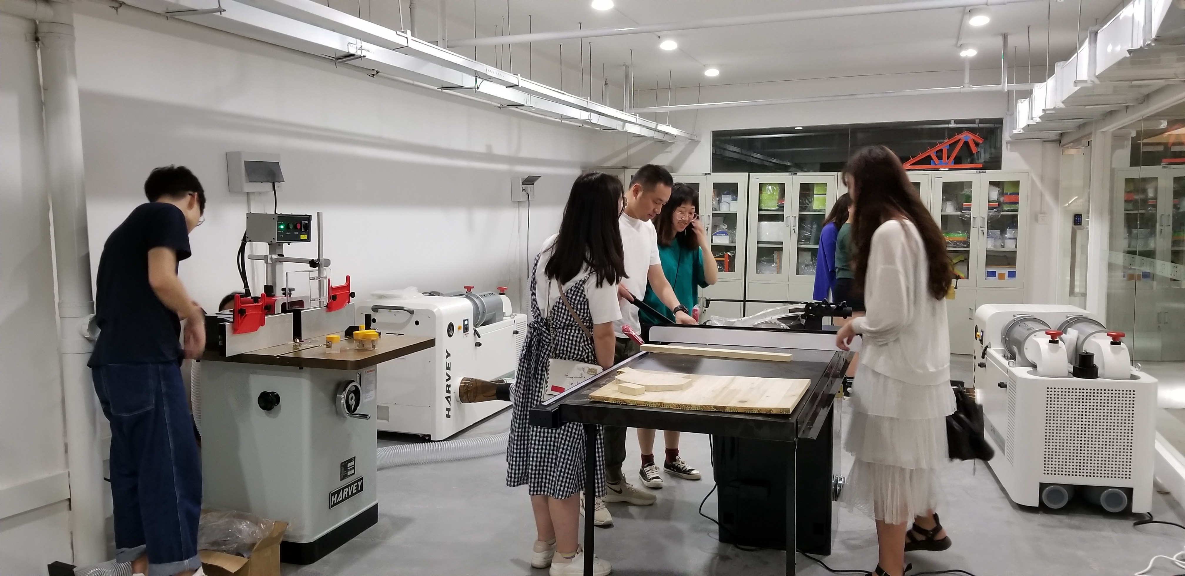 木研坊是湖北工业大学土木建筑与环境学院FDL未来设计研究中心于2019年4月筹备并建立的国家级实验室之一,自创立初期即得到了学校的大力支持和社会各界的广泛关注,其对于实践课程的开展、实践教学的效果、加强学校与企业的合作与联系、培养学生实际动手能力、社会适应能力及安全操作教育都具有重要的意义。目前,各类仪器设备已达十余台件,仪器设备总价值共计约100万元。现有国内先进的木工加工仪器设备可供学生全天候操作学习,在专业教学领域和实验手段上具备了国内较先进的水平。