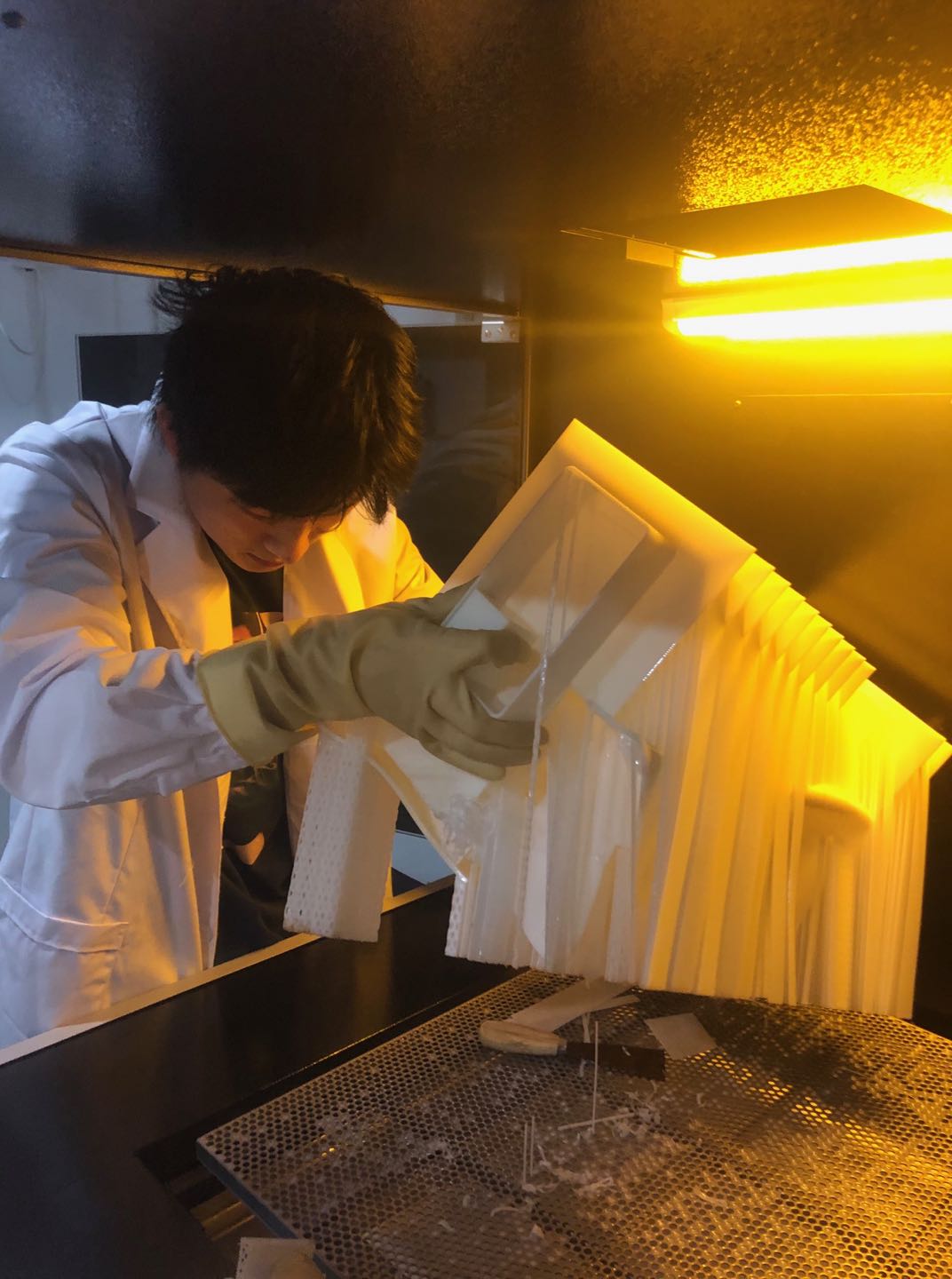 2、原型出机后,及时去除能确定结构的大部分支撑或全部支撑。清洗前,严禁紫外光照射。