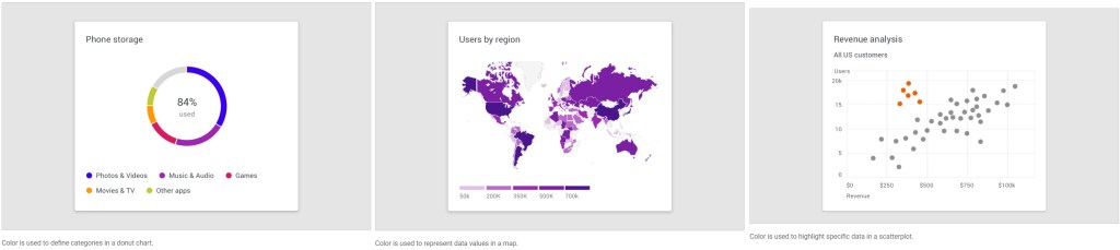 Color can be used to differentiate chart data in four primary ways: