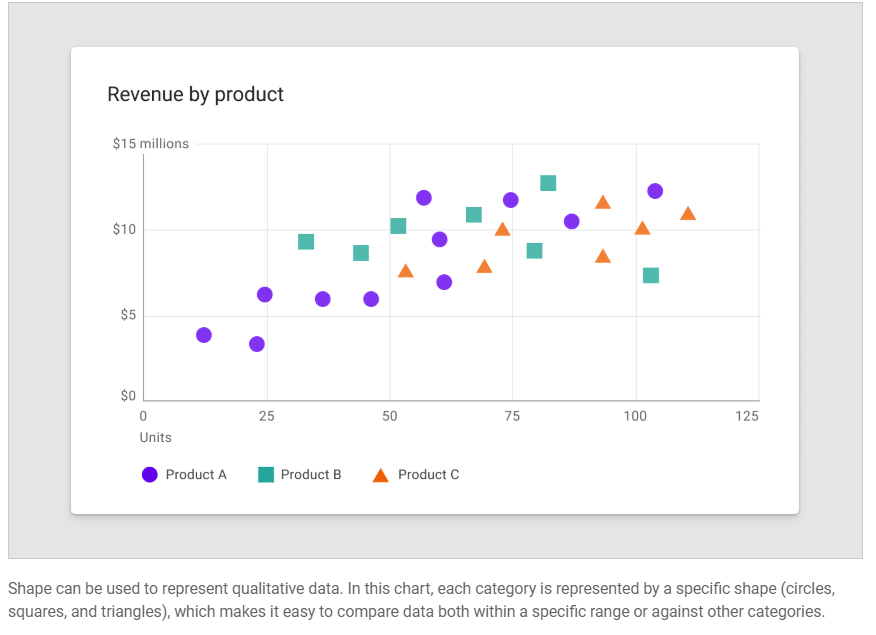Data visualizations use custom styles and shapes to make data easier to understand at a glance, in ways that suit the user’s needs and context.