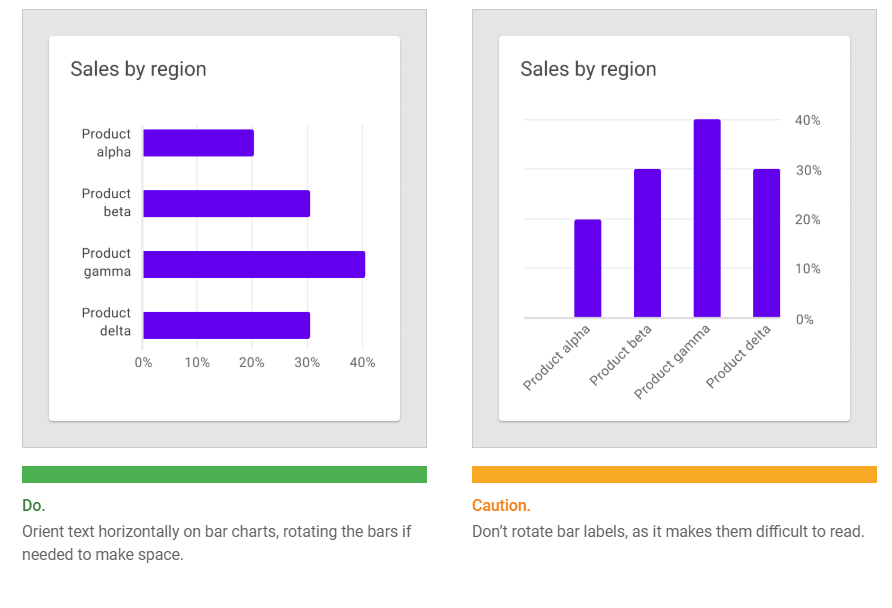 Text labels should be placed horizontally on the chart so that they are easy to read.