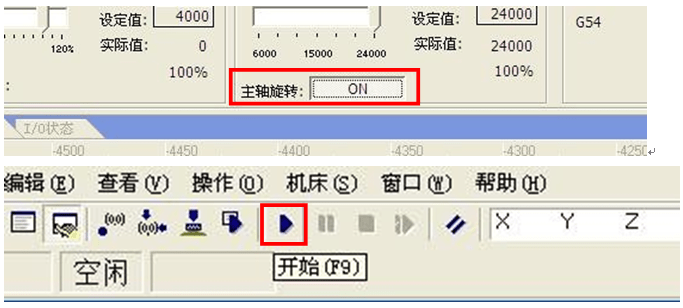 Step14:点击“主轴旋转”,使钻头开始转动,直至转动声音稳定下来,选择“开始”
