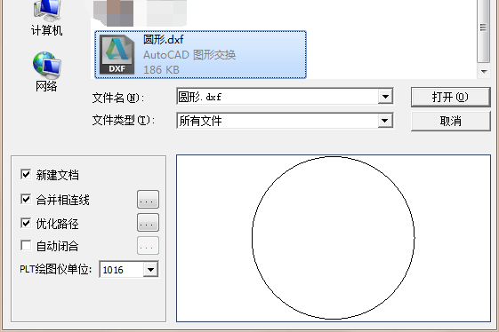 - 点选文件,导入。 选择已保存好的 dxf 文件。