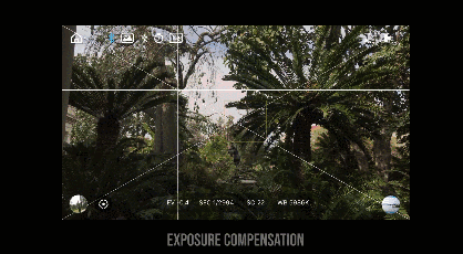 ⑨ 拨盘右键为曝光补偿设置快捷键,将弹出曝光补偿的参数滑动条设置界面,可顺时针/逆时针旋转拨盘进行调大/调小曝光补偿参数值。