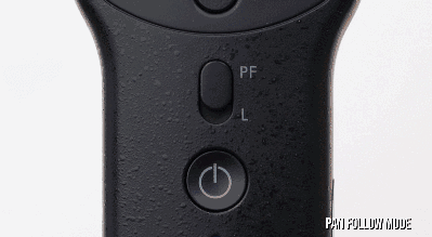航向跟随模式:模式切换键向上拨时稳定器进入PF(Pan Following)航向跟随模式,航向跟随模式下俯仰轴电机和横滚轴电机锁定,手机水平方向跟随手柄转动(在拍摄旋转或者半旋转的镜头时可使用此模式)在拍摄旋转或者半旋转的镜头时可使用此模式