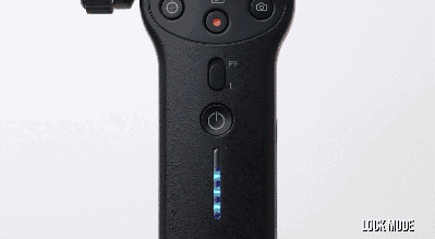 锁定模式:模式切换键向上拨时稳定器进入L(Locking)锁定模式,锁定模式下三个电机全部锁定,手机朝向不会跟随手柄运动而运动(在拍延时或者大范围延时时使用此模式)