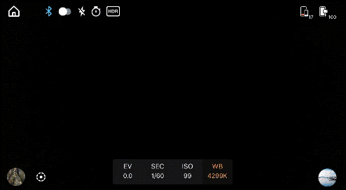 ② 单击右上角的DISP.键,可显示/关闭当前画面4项参数值(依次为曝光补偿、快门、ISO和色温)。