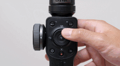 “疯狗模式”:按住“疯狗模式”键时稳定器进入“疯狗模式”,“疯狗模式”下稳定器的跟随速度将会加快,手机俯仰和水平朝向快速跟随手柄转动(在拍摄快速转场或快速跟拍时可使用此模式)