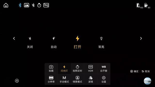 ② 闪光灯。在闪光灯下,依次为:关闭、自动、打开和常亮,根据具体拍摄需求按下拨盘中确认键即可。