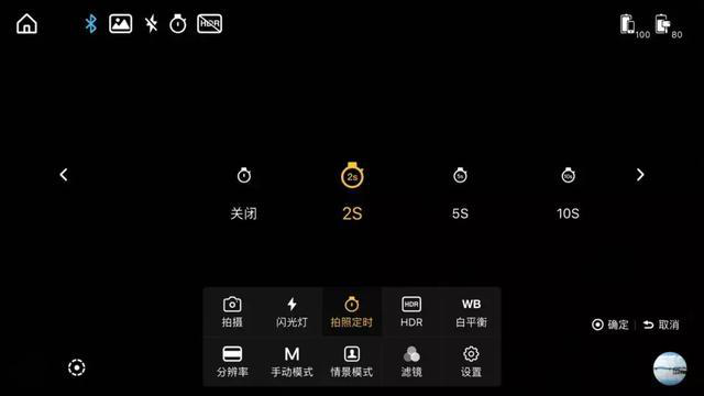 ③ 定时拍照。在定时拍照下,依次为:关闭、2s、5s和10s,可根据远距离的定时自拍等需求按下拨盘中确认键即可。