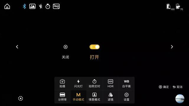 ⑩ 长按拨盘中间可开启常亮手机的闪光灯,在拍摄过程中进行补光,再次长按即可关闭。
