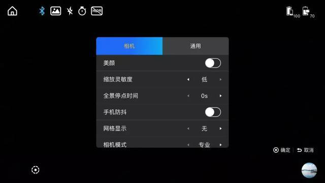 美颜即为美化皮肤功能;缩放灵敏度可调节手轮的灵敏度设置;全景停留时间可设置全景拍照过程中停点时长的设置;手机防抖即为打开或关闭手机自带光学防抖等防抖技术;网格显示即可选择不同的网格进行拍摄构图参考;相机模式则可在专业及常规中切换,若选择常规将进入旧版拍摄界面。