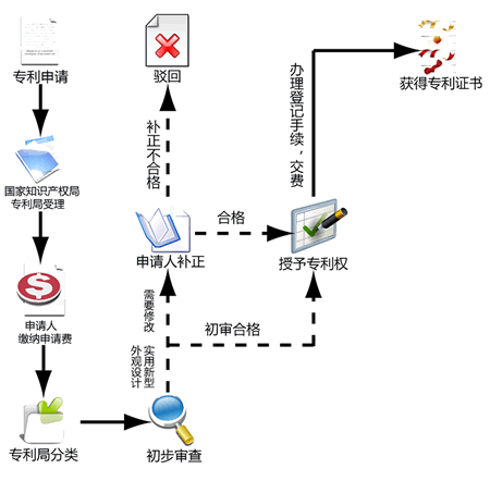 依据专利法,外观设计或者实用新型专利申请在审批中分为受理、初审和授权三个阶段。